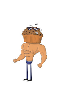 For day 3, I knew I wanted to make an animation to music created by one of the composers that were also part of the project. I ended up coming across Moutzouris'es piece which I really liked and It gave me the idea of animating a character walking to it, in a cool manner. This character ended up coming in the form of a sketch I did back in first year of the stud muffin, a hunky man with a muffin for a head- don't ask. I came up with the idea of slowly revealing this character to the music, finally showing off his head when the music reaches its climax, also reveling the visual joke. I originally had intended to animated this character in after effects using the puppet tool, actually going as far as to creating the full character with split up limbs for animating.